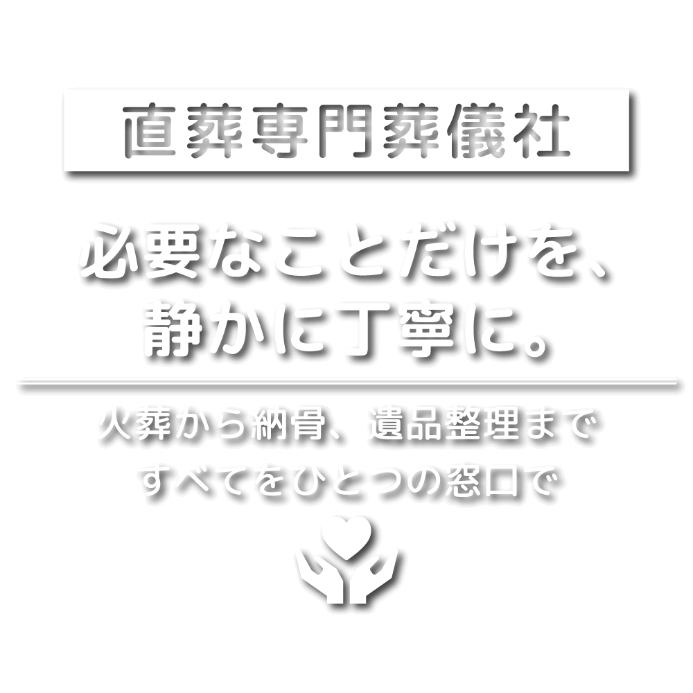 当社では、直葬専門葬儀社として必要なことだけを丁寧に整えることを大切にし、搬送・安置・火葬手続きまでの一連の流れをわかりやすくサポートしています。小さなお見送りでも、最後まで心のこもった時間になるよう静かに寄り添いながらお手伝いいたします。