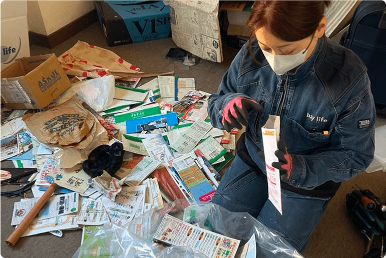 相続手続きなどのご事情が整い次第、ご家族の負担を最小限に。貴重品・重要書類の探索から、家具の撤去、清掃、不用品の回収、供養まで、心を込めた対応で、安心と清潔な「その後の住まい」を整えます。